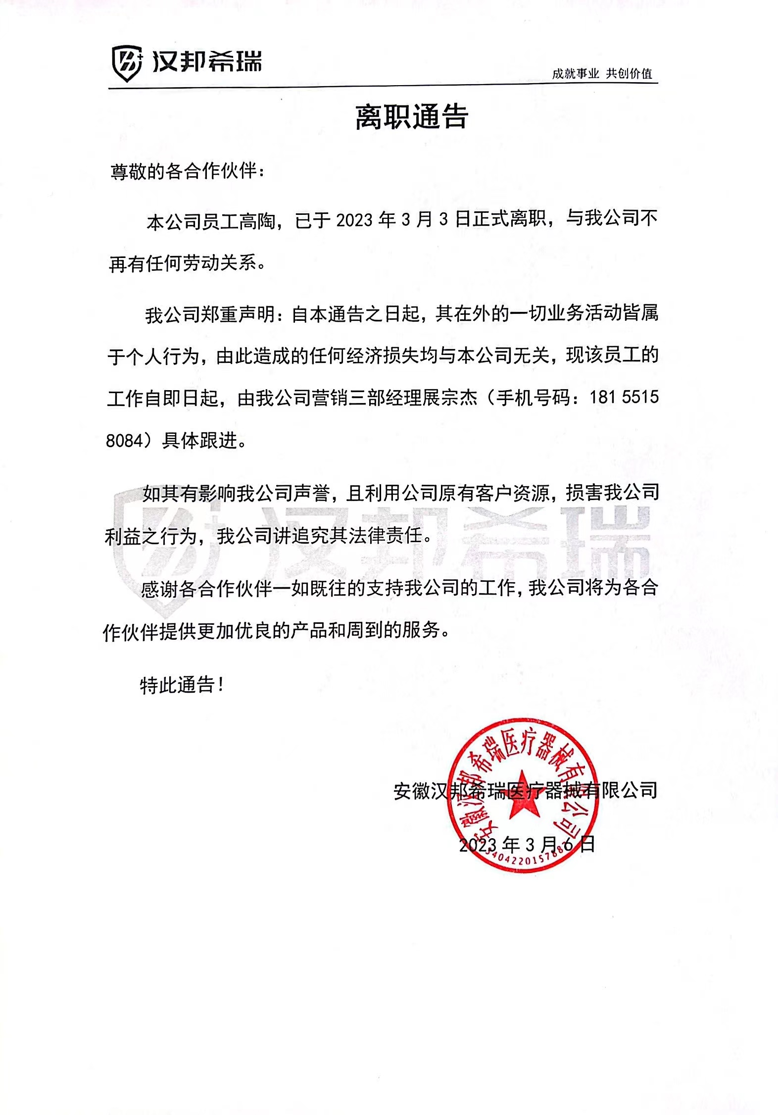 員工離職通告