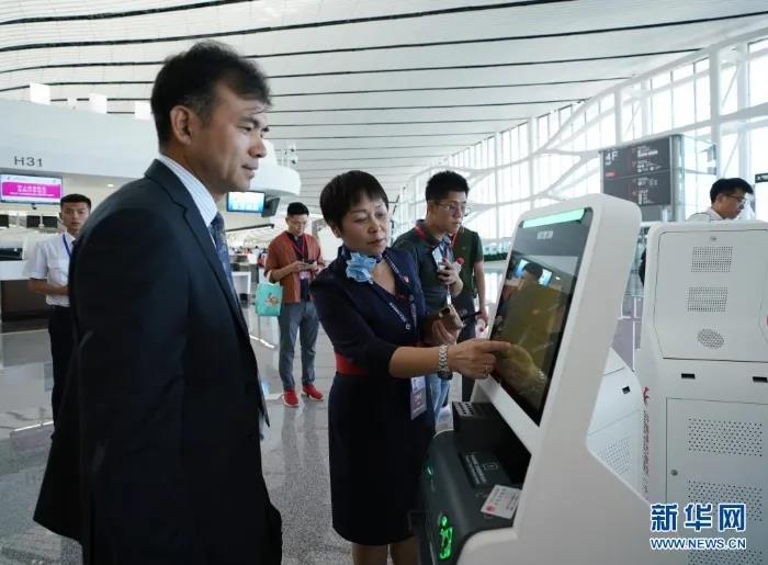 在值機(jī)柜臺(tái)前,習(xí)近平總書(shū)記察看智能技術(shù)、全自助無(wú)紙化智慧值機(jī)的流程,對(duì)機(jī)場(chǎng)采用現(xiàn)代化設(shè)施為旅客提供便利服務(wù)的做法表示肯定。