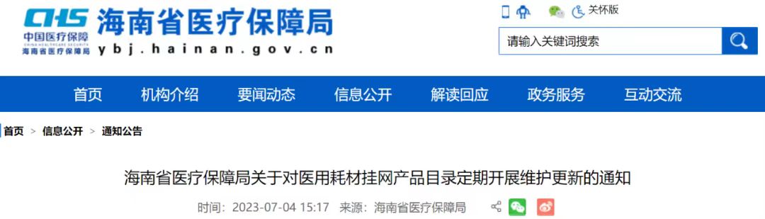 7月4日,海南省醫(yī)保局發(fā)布《關(guān)于對醫(yī)用耗材掛網(wǎng)產(chǎn)品目錄定期開展維護(hù)更新的通知》(簡稱《通知》),自印發(fā)之日起正式執(zhí)行。